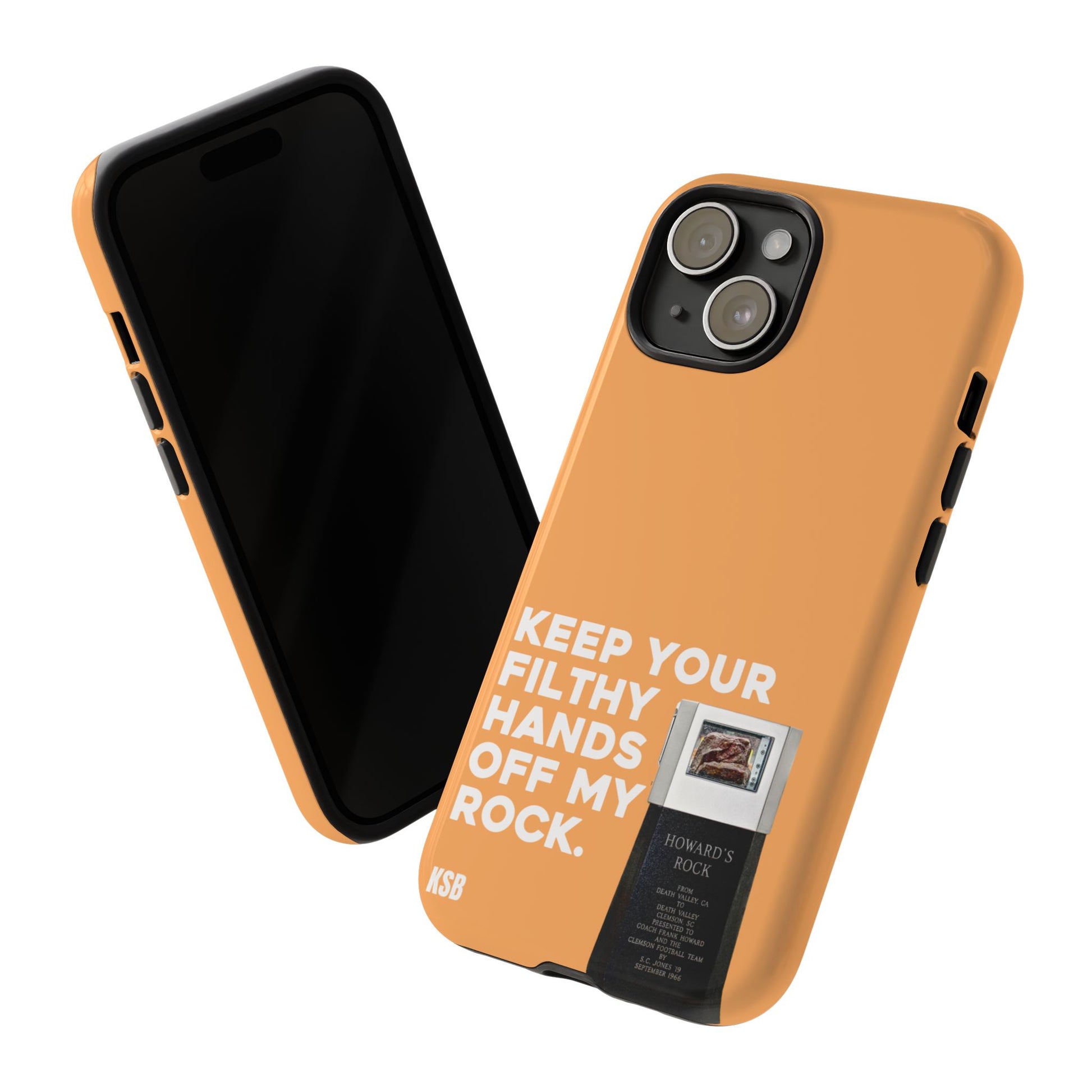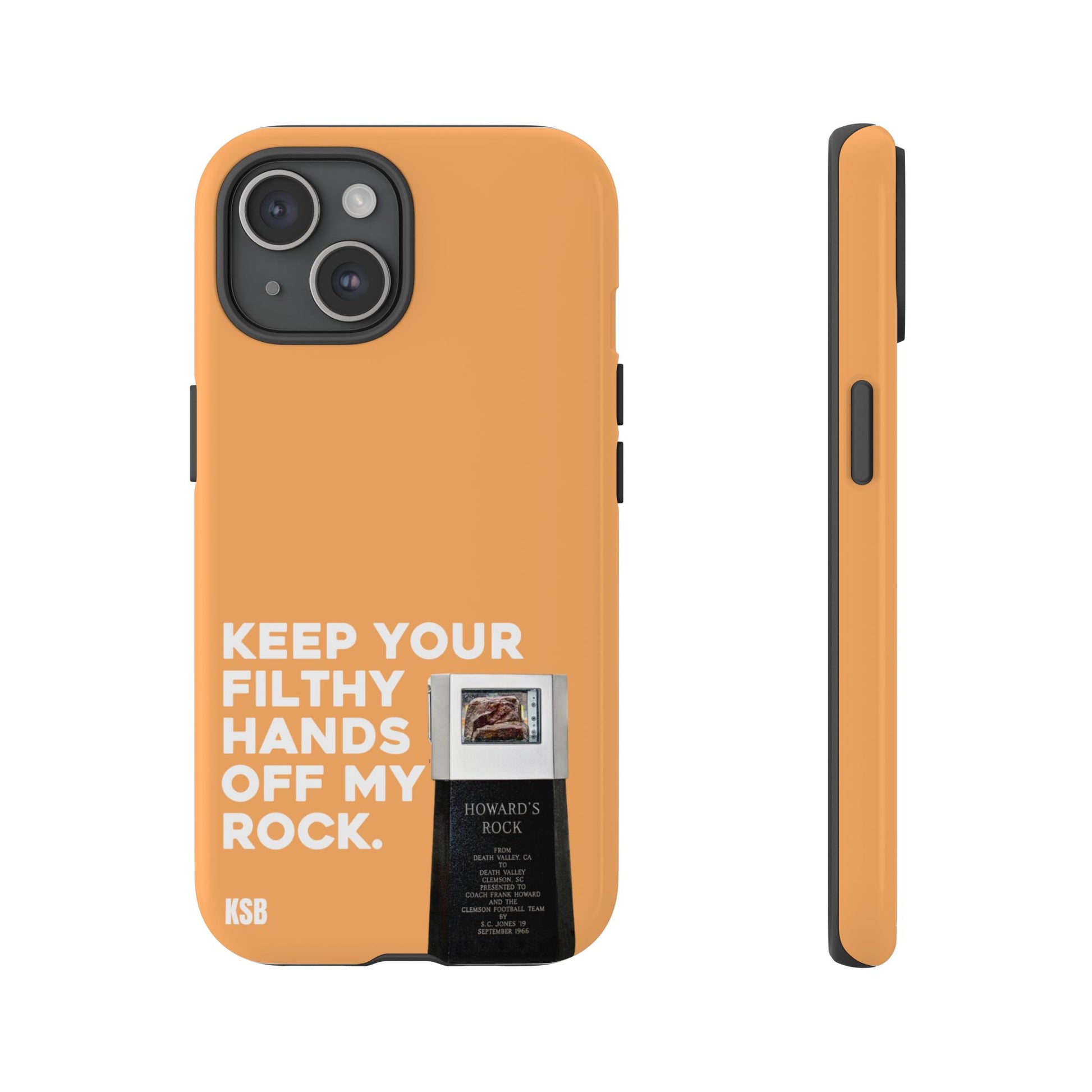 For the die-hard Tiger faithful, the Hands Off My Rock phone case is as bold as your Clemson pride. Featuring Howard’s Rock front and center with the iconic phrase “Keep Your Filthy Hands Off My Rock,” this design pays homage to one of Death Valley’s most legendary traditions. Finished with a glossy coat, it’s a durable case that’s as spirited as it is protective.