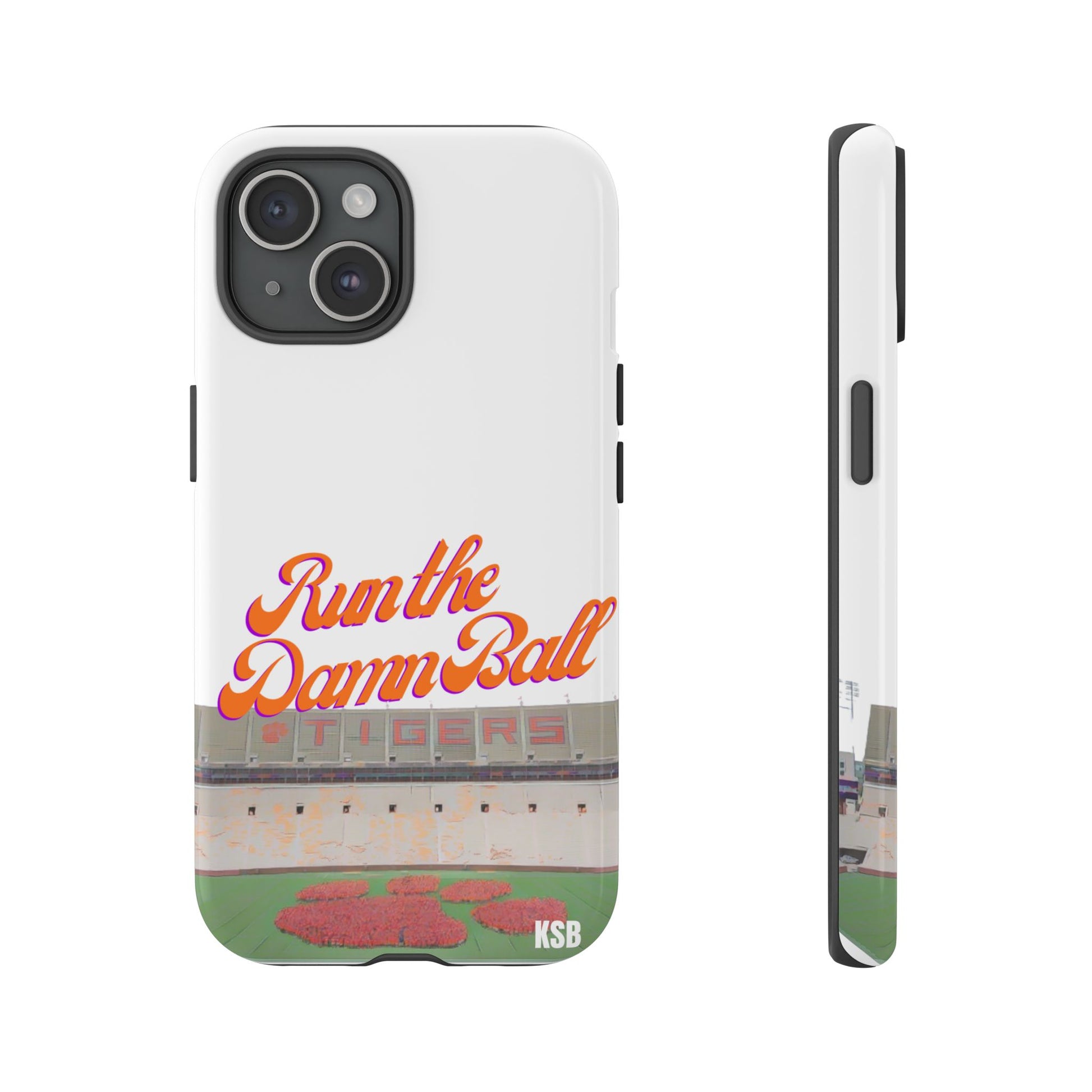 Say it louder—the Run the Damn Ball phone case is built for fans who live and breathe Clemson football. Featuring bold retro-inspired lettering in orange and purple against a backdrop of Death Valley’s iconic stadium and paw print, this case captures the heart of Tiger gamedays. Durable, slim, and finished with a glossy shine, it’s made to keep your phone protected while showing off your passion.